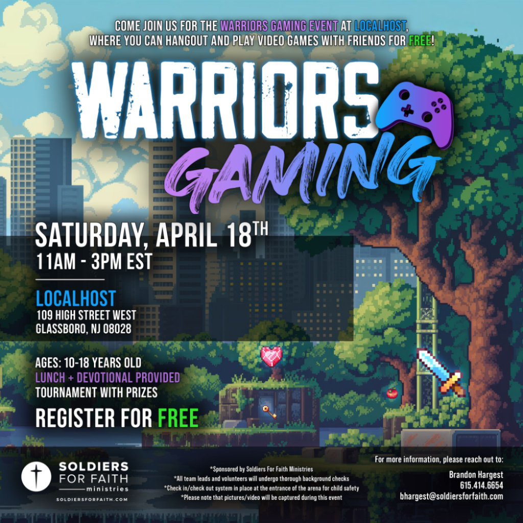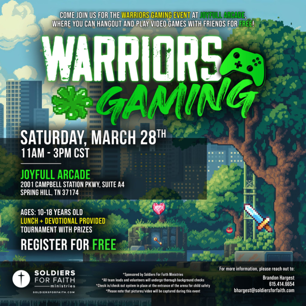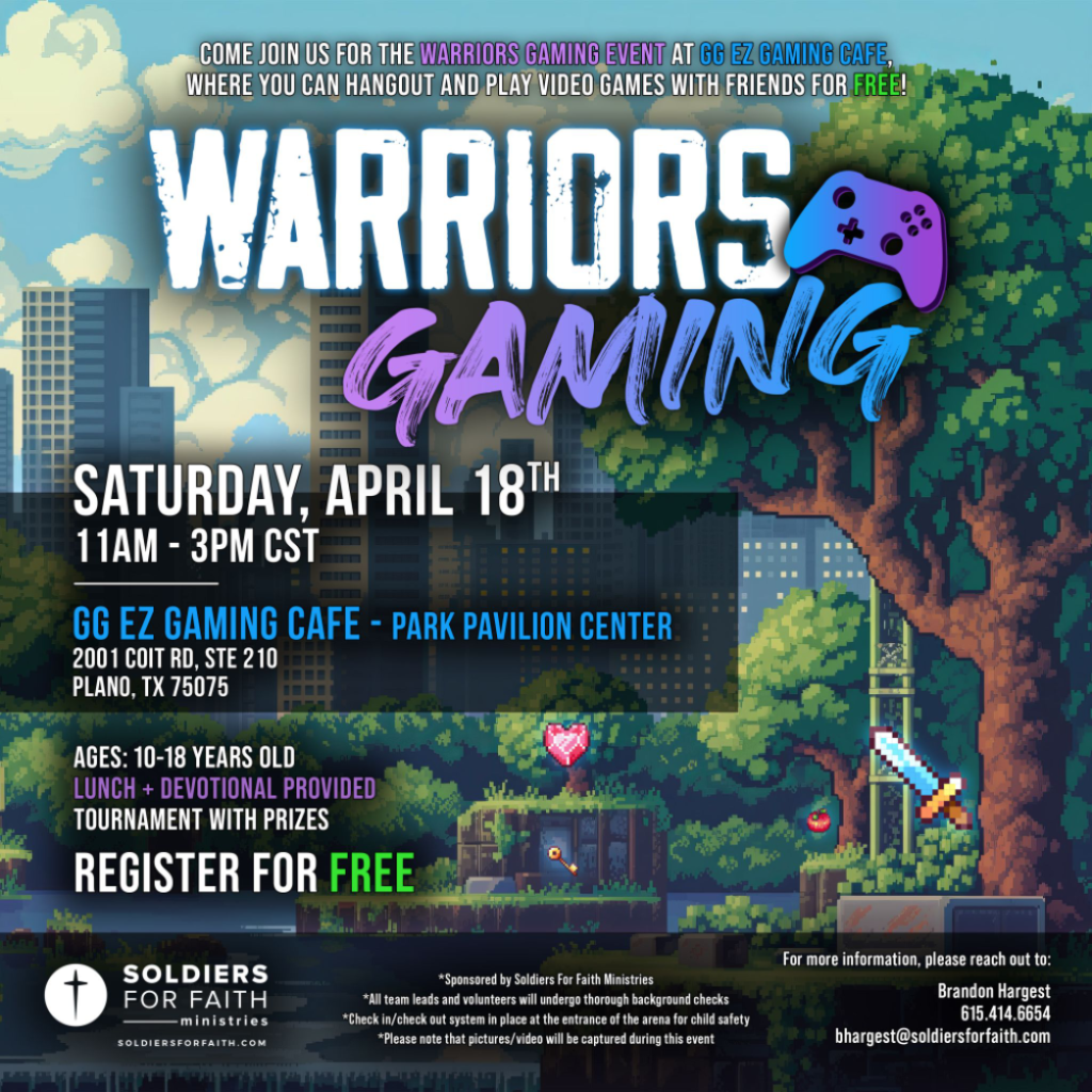 Soldiers For Faith also provides Warriors Gaming Bible Studies that take place each week, where kids can grow in their faith as they study God’s Word.