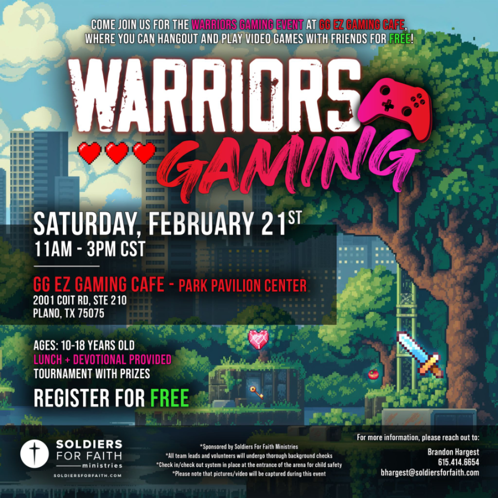 Soldiers For Faith also provides Warriors Gaming Bible Studies that take place each week, where kids can grow in their faith as they study God’s Word.